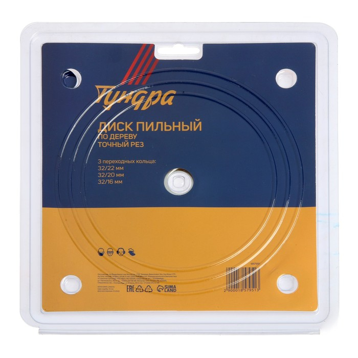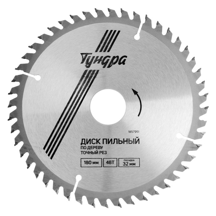 Диск пильный по дереву ТУНДРА, точный рез, 180 х 32 мм (кольца на 22,20,16), 48 зубьев