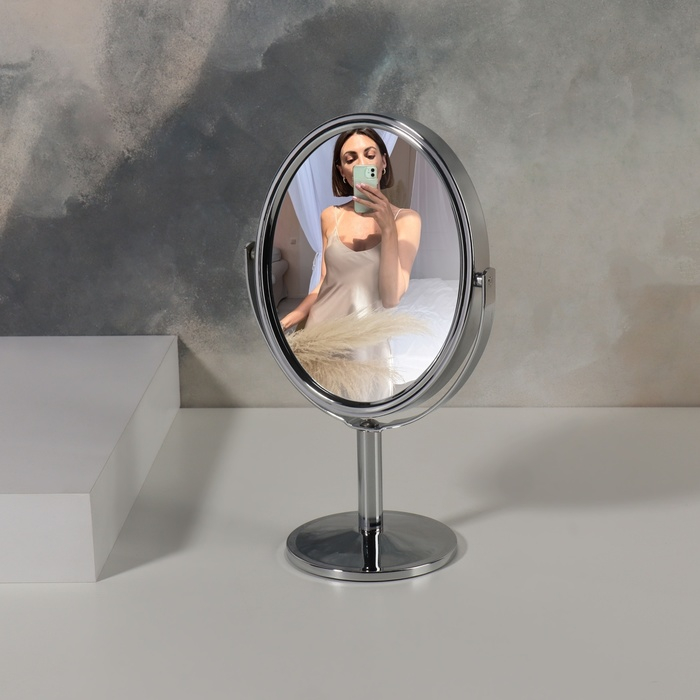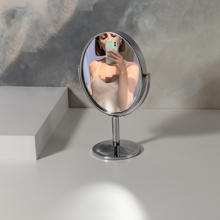 Зеркало на ножке «Овал», двустороннее, с увеличением, зеркальная поверхность 9,4 × 11,5 см, цвет серебристый