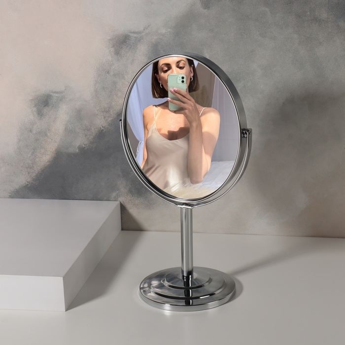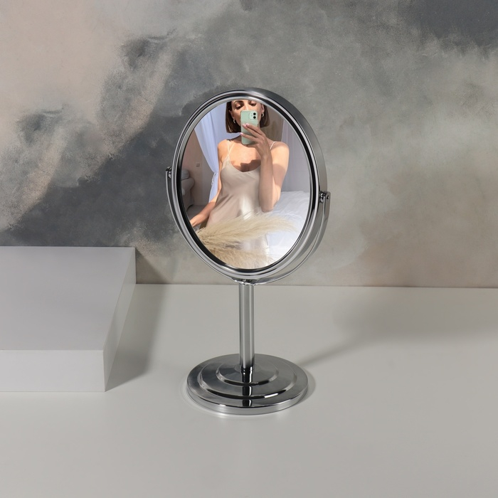 Зеркало на ножке «Овал», двустороннее, с увеличением, зеркальная поверхность 12,5 × 14 см, цвет серебристый