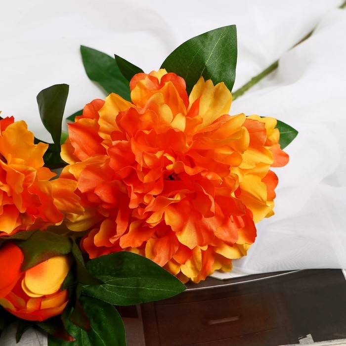 Цветы искусственные "Пион снежный пик" d-14 см 61 см, оранжевый