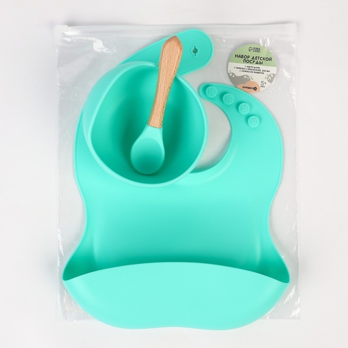 Набор для кормления: нагрудник, тарелка на присоске, ложка, Крошка Я, бирюзовый