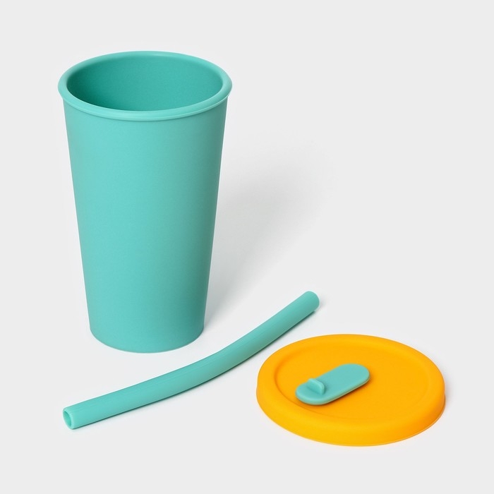 Стакан с крышкой и трубочкой, 350 мл, 9×9×13,5см, цвет голубой