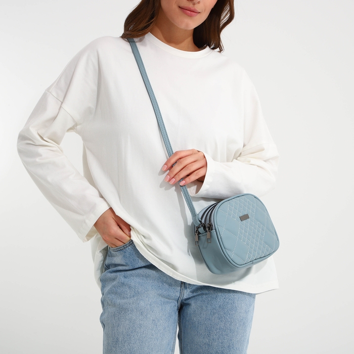 Сумка женская кросс-боди на молнии, цвет серо-голубой