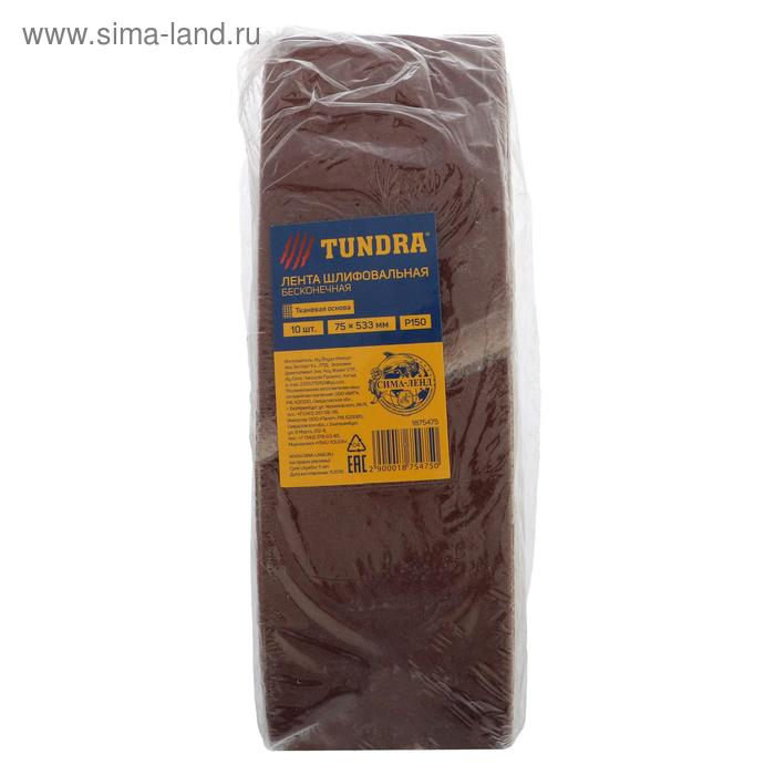 Лента абразивная бесконечная ТУНДРА, на тканевой основе, 75 х 533 мм, Р150, 10 шт.