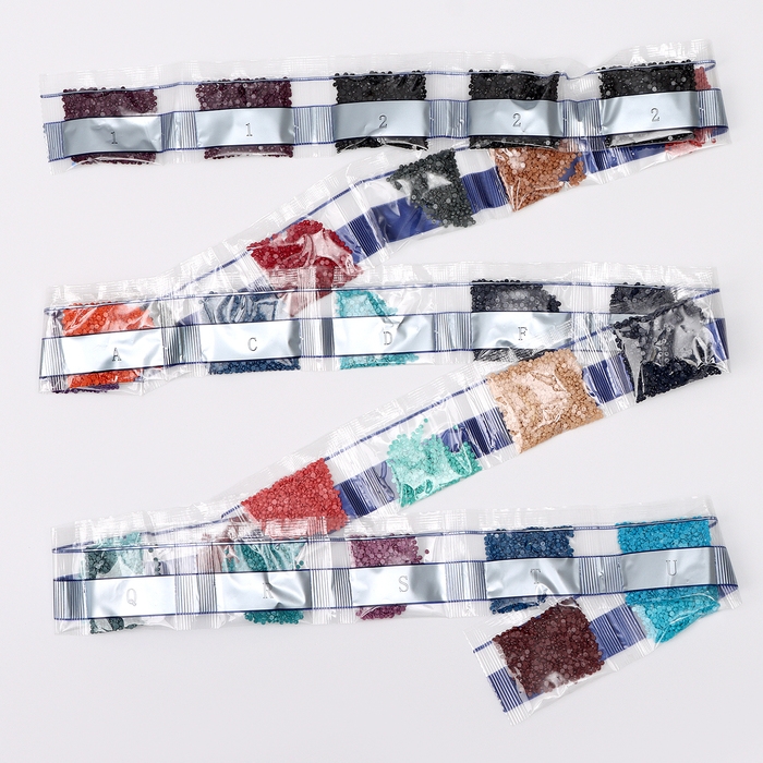 Вам предстоит разложить кристаллики карандашом по пронумерованной схеме. Холст с клеевым покрытием будет надёжно удерживать стразы.