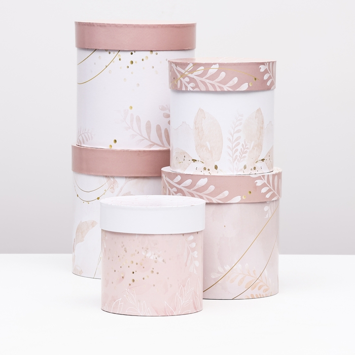 Набор шляпных коробок 5 в 1" Нежность" , 23 х23 - 15 х 15 см