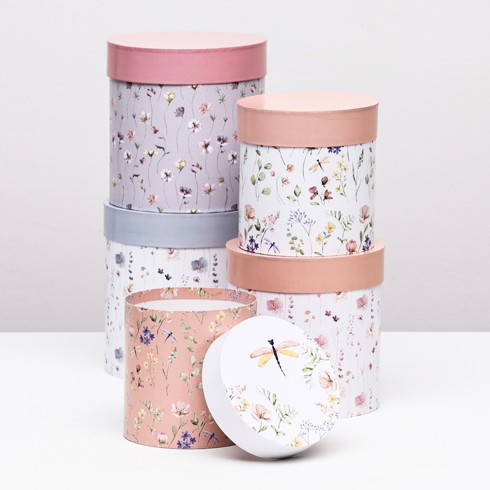 Набор шляпных коробок 5в1 "Цветочный", 20 × 20 × 20‒14 × 14 х 14 см