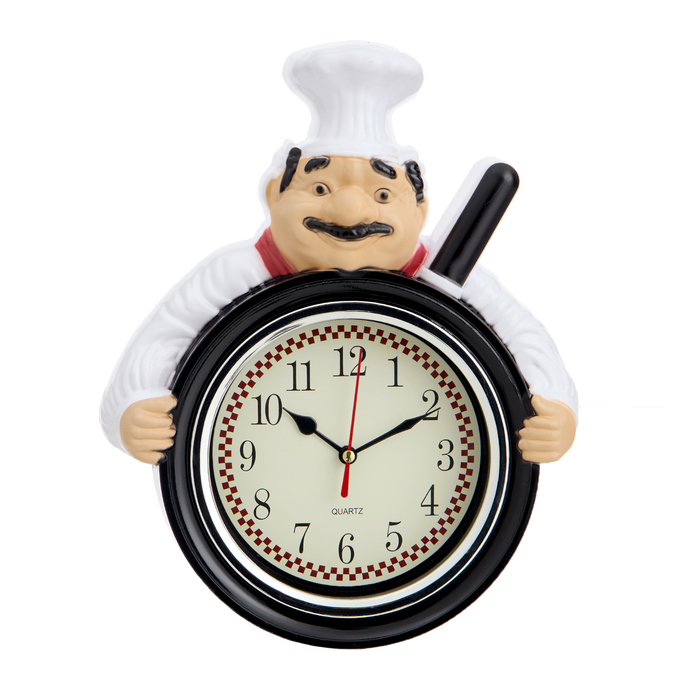 Часы настенные интерьерные, для кухни, "Повар со сковородой", дискретный ход, 26.5 х 20 см