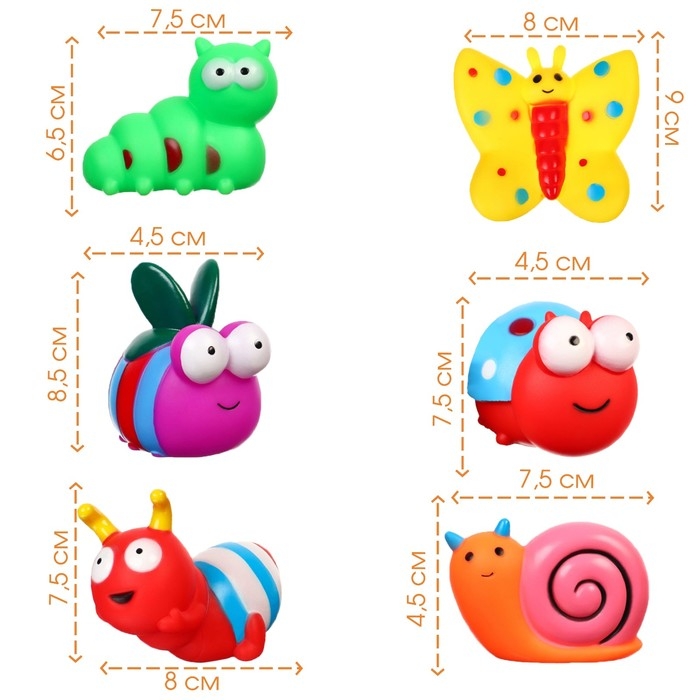 Набор резиновых игрушек для ванны «Букашечки», с пищалкой, 6 шт, Крошка Я