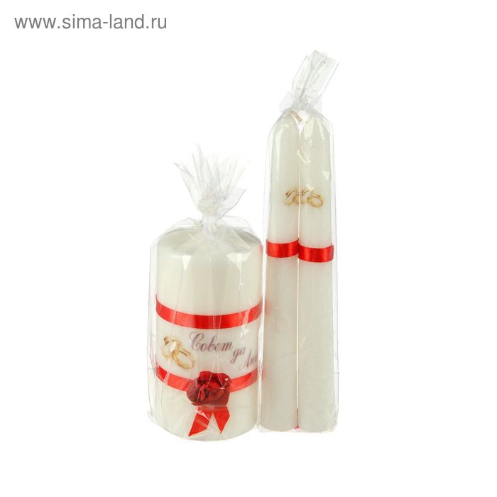 Набор свадебных свечей "Совет да любовь с розой"красный:родительские 1,8х15см;очаг 5х9,5см