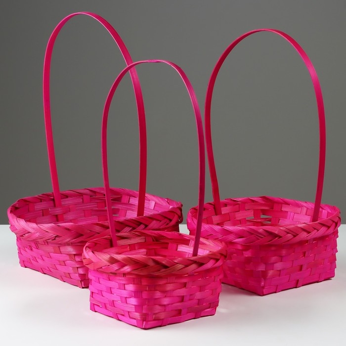Набор корзин плетеных, D19x9/32 см, D22x9,5/34 см, D25x10/36 см, 3шт, розовые, бамбук