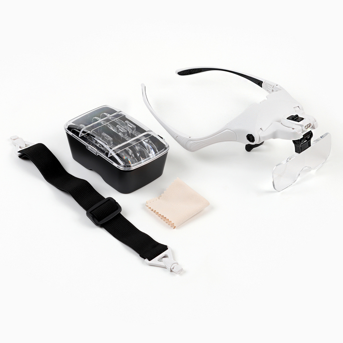 Лупа налобная 1-3х бинокулярная, с подсветкой, 5 линз в комплекте, 3 ААА