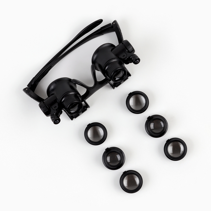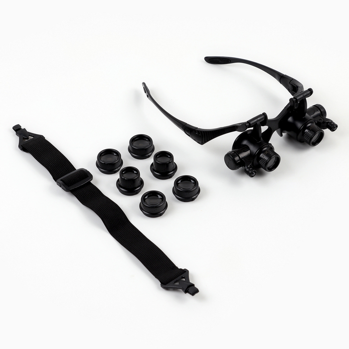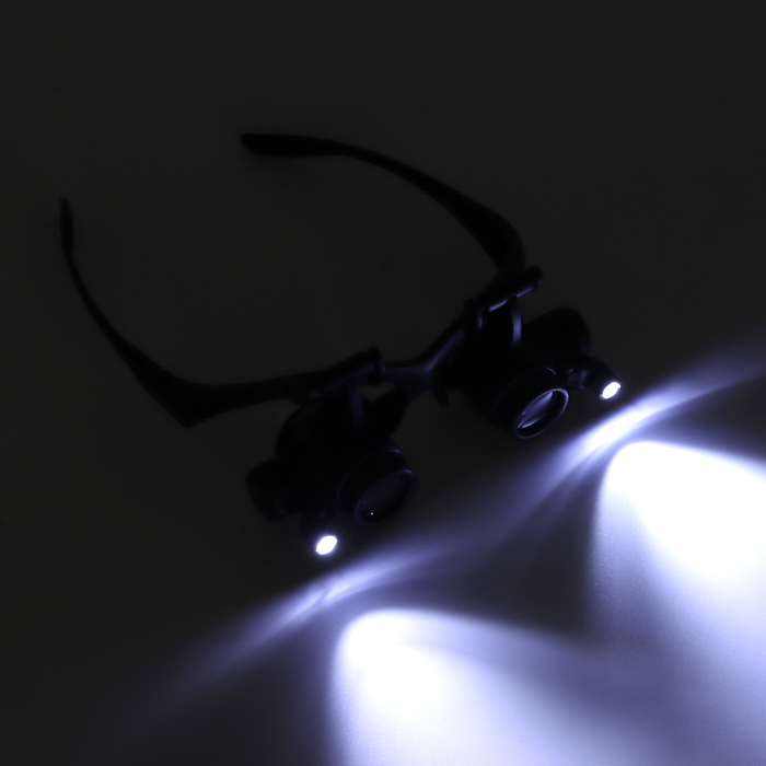 Лупа налобная 10-25х бинокулярная, с подсветкой, 8 линз в комплекте