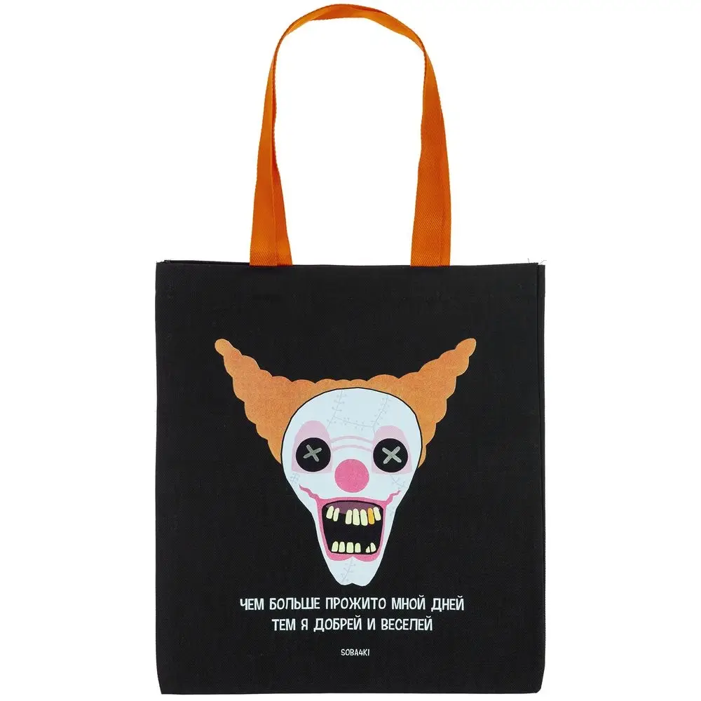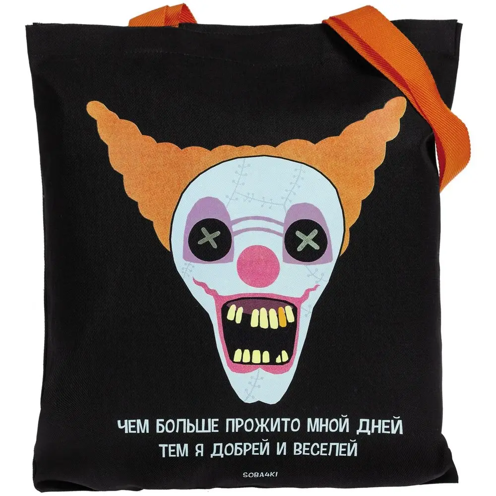 Холщовая сумка «Цирк», черная с оранжевыми ручками