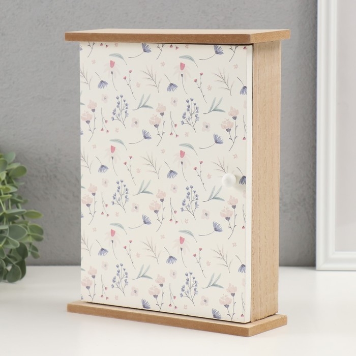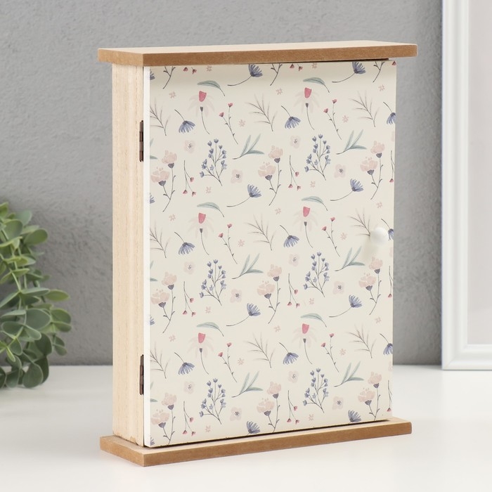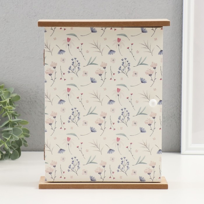 Ключница дерево 6 крючков "Цветы полевые" 20х6,4х26 см