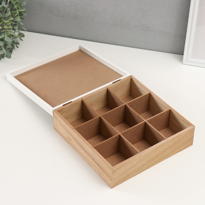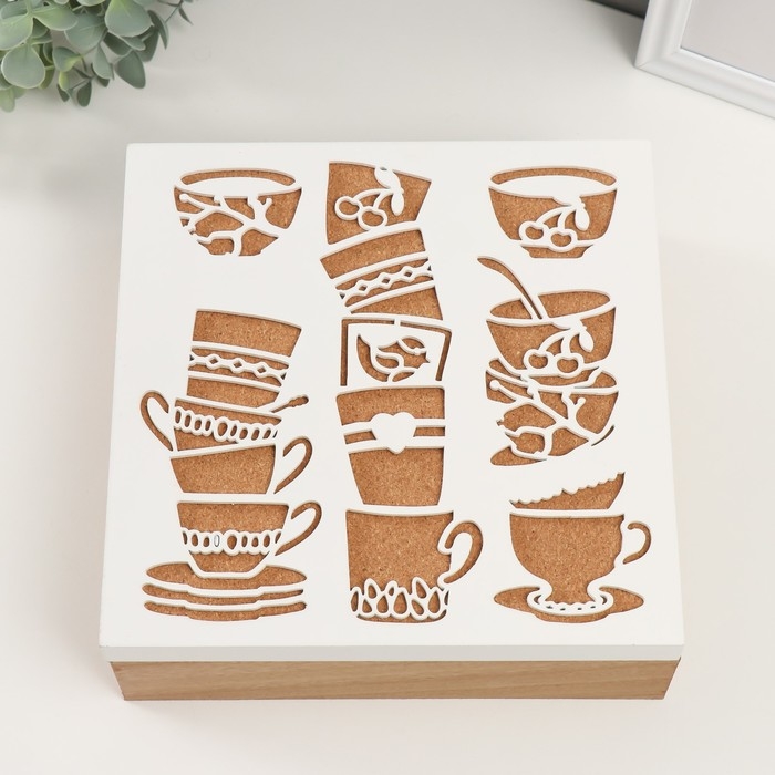 Шкатулка дерево с делениями "Коллекция чашек" 23,3х23,3х8 см