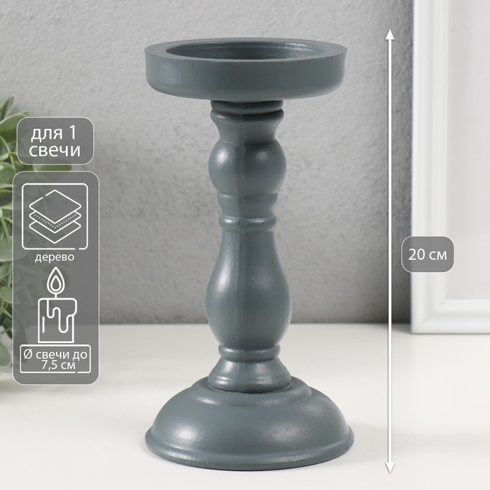 Подсвечник дерево на 1 свечу "Оскар" тёмно-серый 20х10,3х10,3 см