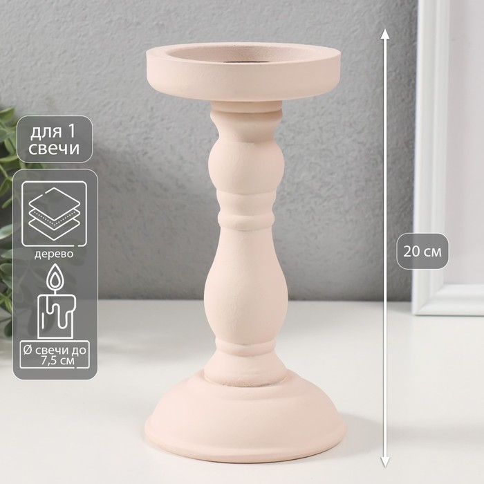 Подсвечник дерево на 1 свечу "Оскар" светло-розовая пудра 20х10,3х10,3 см