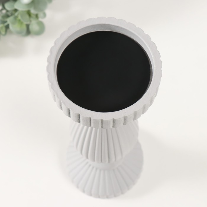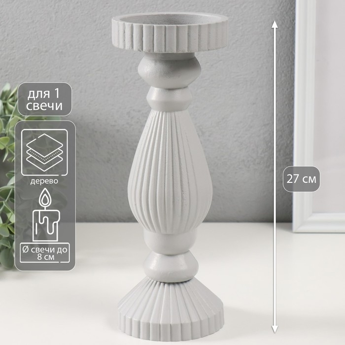 Подсвечник дерево на 1 свечу "Гофре" светло-серый 9,7х9,7х27 см