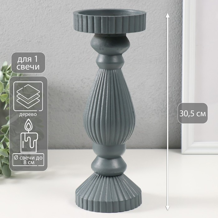 Подсвечник дерево на 1 свечу "Гофре" тёмно-серый 9,7х9,7х27 см