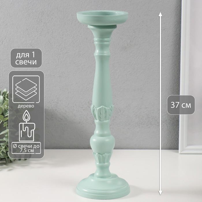 Подсвечник дерево на 1 свечу "Колонна цветочная" зелёно-серый 10х10х37 см