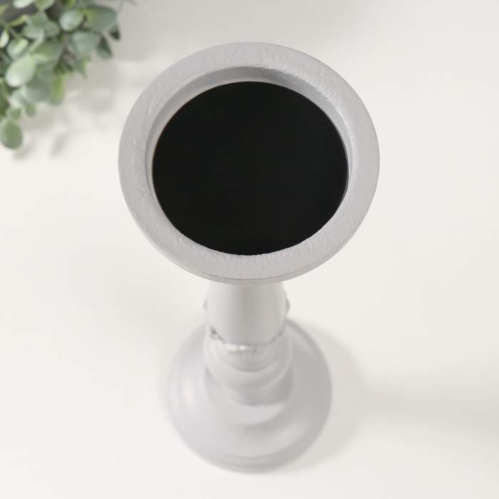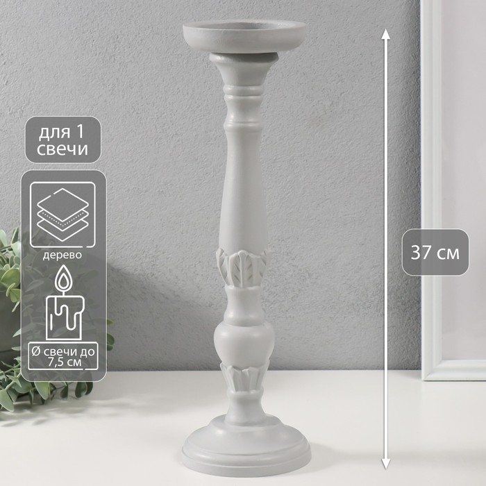 Подсвечник дерево на 1 свечу "Колонна цветочная" светло-серый 10х10х37 см