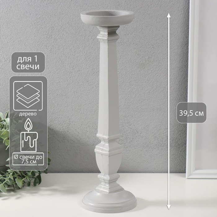 Подсвечник дерево на 1 свечу "Пантеон" светло-серый 11,5х11,5х39,5 см