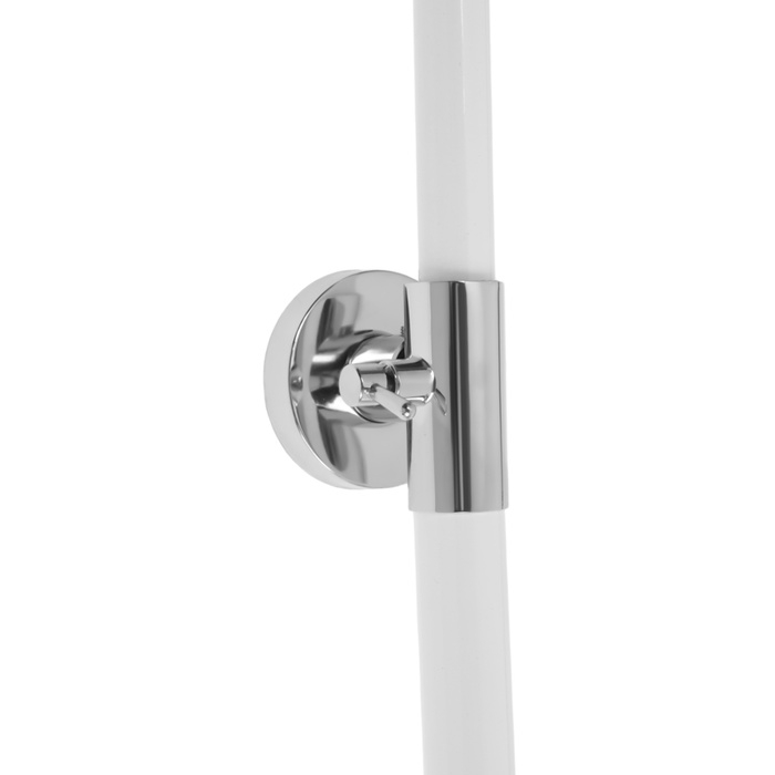 Конструкция фиксируется на стене, оснащена смесителем со встроенным изливом в корпус. На штанге расположен держатель для лейки со шлангом. Сверху находится тропическая лейка. Направление потока воды меняется с помощью механического рычажного переключателя.
