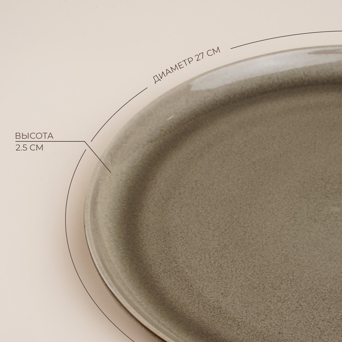 Тарелка керамическая обеденная Доляна «Пастель», d=27 см, цвет коричневый