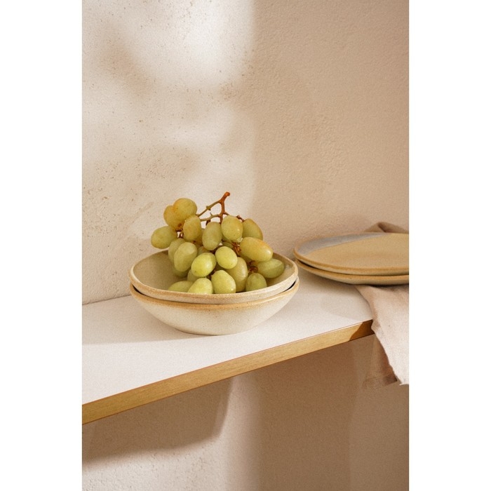Набор мисок фарфоровых SL Home «Волны Сардинии», 600 мл, d=18,5 см, цвет бежевый