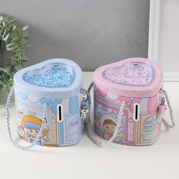 Копилка металл с замочком "Сладости" МИКС 13х12,5х12 см