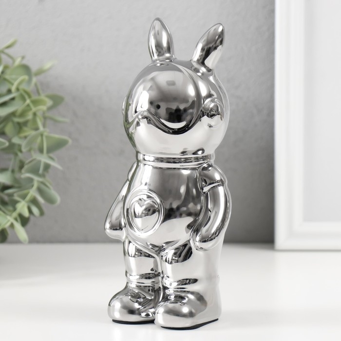 Копилка керамика "Кролик" серебро 6х8,5х18 см