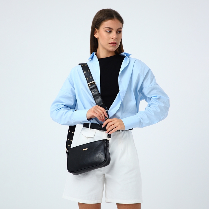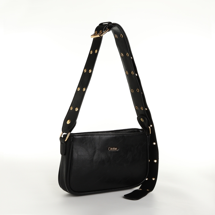 Сумка женская, багет, на молнии, цвет чёрный