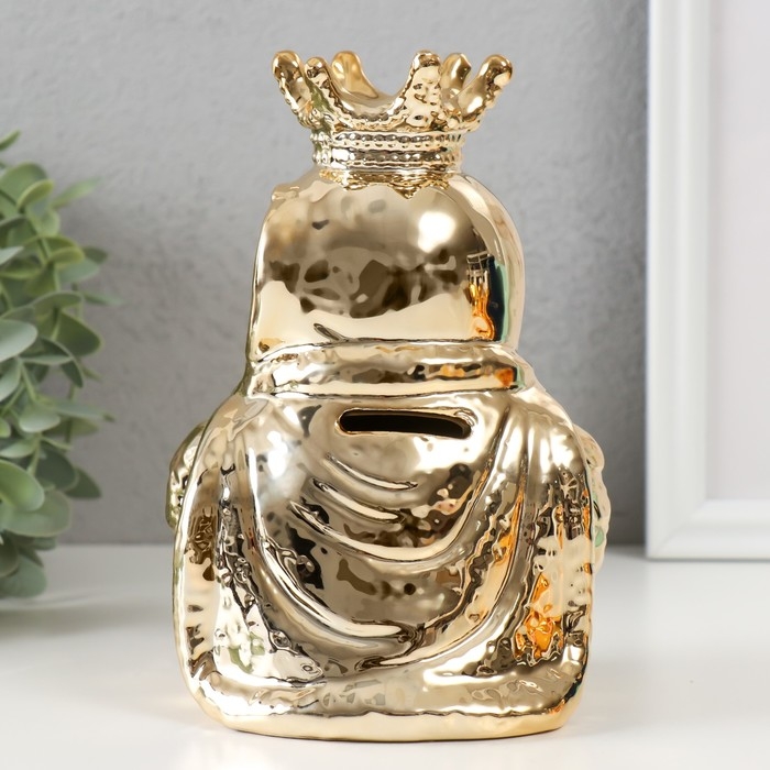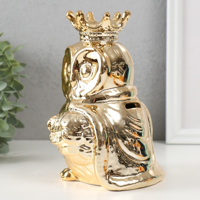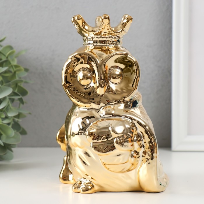 Копилка керамика "Филин в короне и мантии" золото 12х12х18,5 см