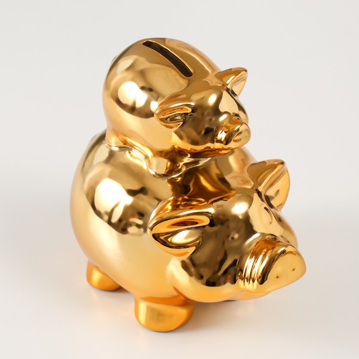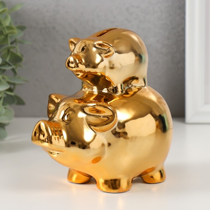 Копилка керамика "Две золотые свинки - пирамида" 12,5х8х14 см