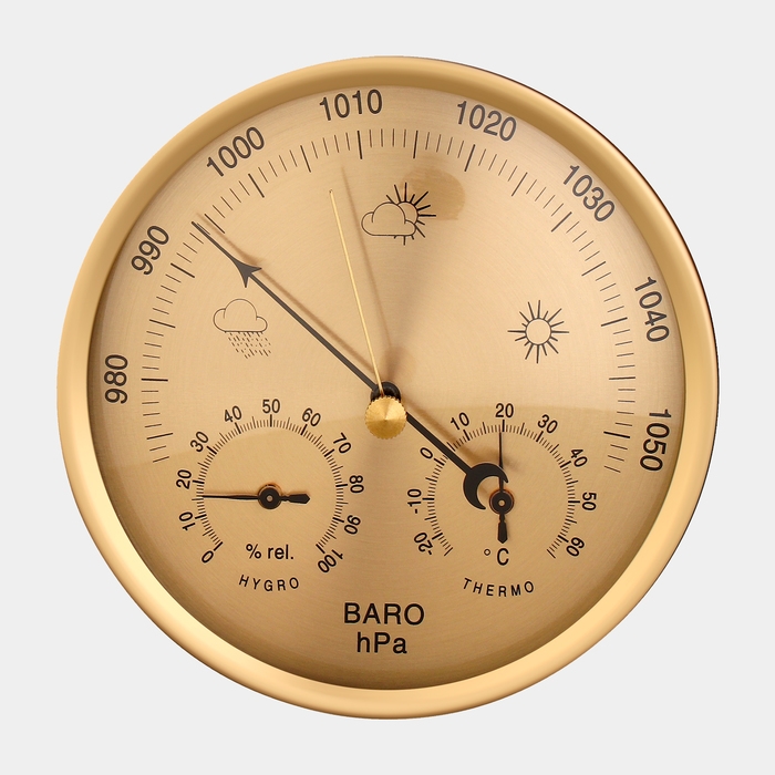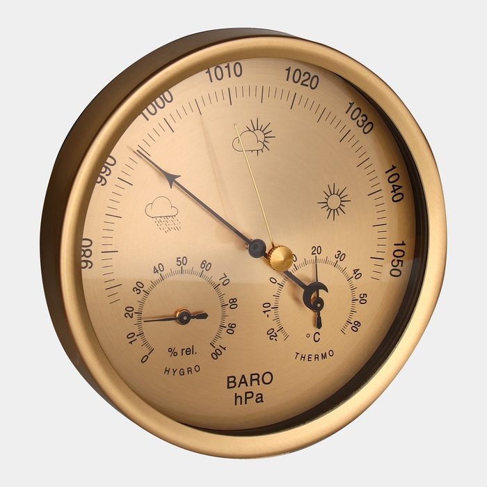 Барометр механический, метеостанция, настенный, золотой, d = 13 см