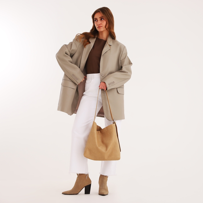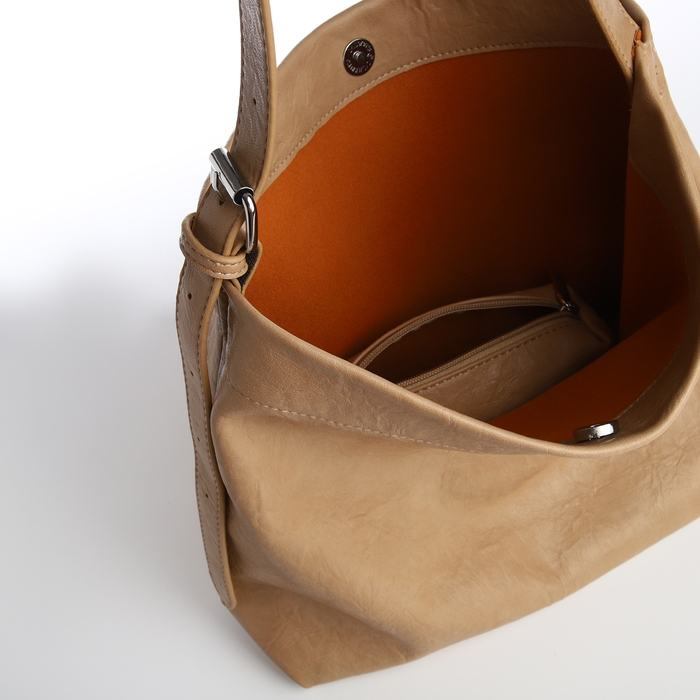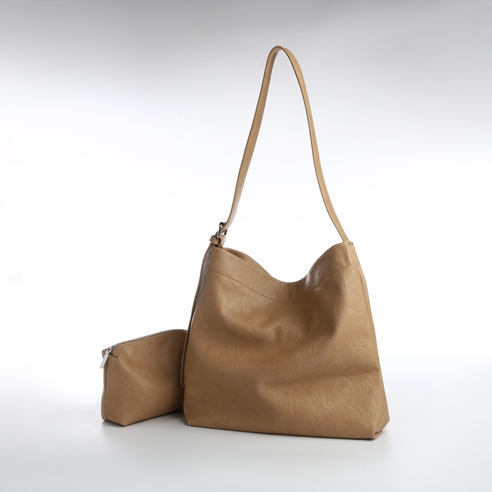 Сумка-мешок женская на магните, косметичка, цвет бежевый