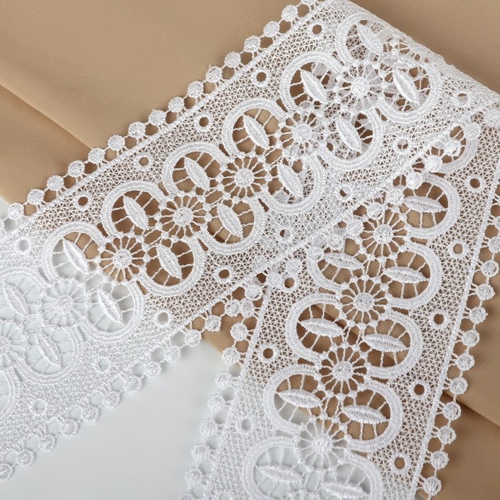Кружево гипюровое, 15 мм × 14 ± 1 м, цвет белый