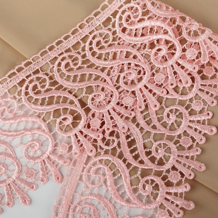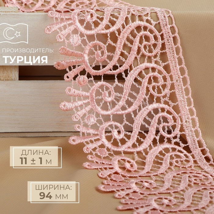 Кружево гипюровое, 94 мм × 11 ± 1 м, цвет нежно-розовый