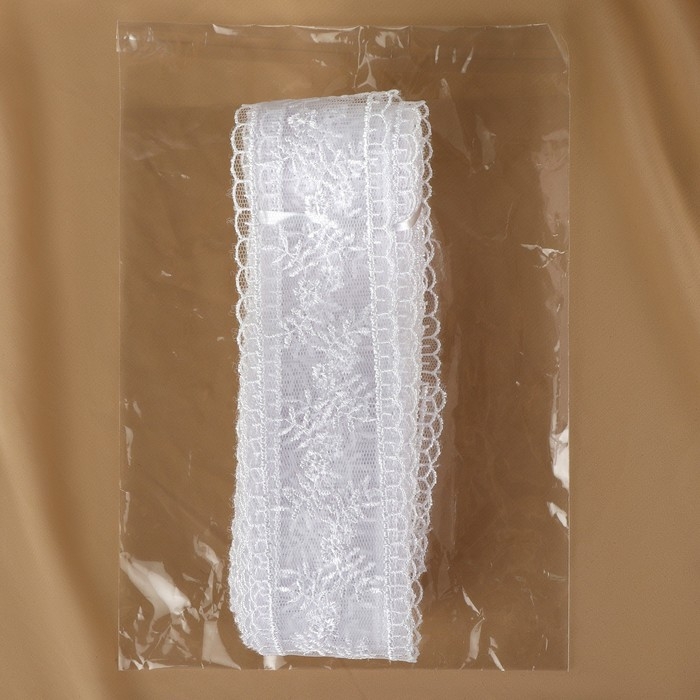 Кружево на сетке, 50 мм × 11 ± 1 м, цвет белый