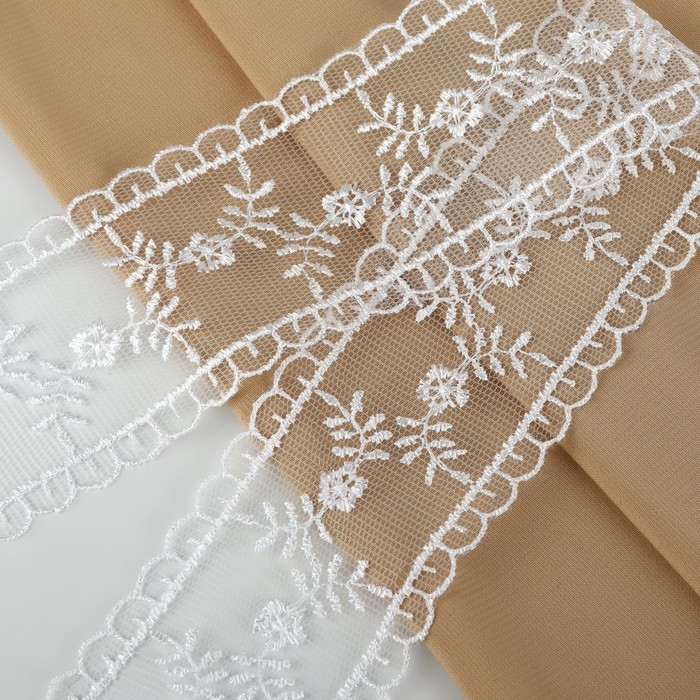 Кружево на сетке, 105 мм × 11 ± 1 м, цвет белый