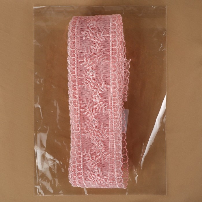 Кружево на сетке, 50 мм × 11 ± 1 м, цвет нежно-розовый