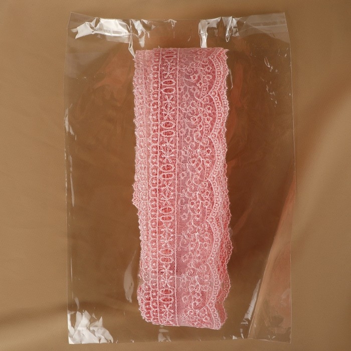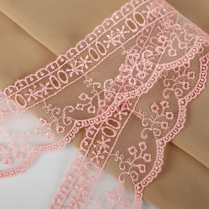 Кружево на сетке, 45 мм × 11 ± 1 м, цвет нежно-розовый