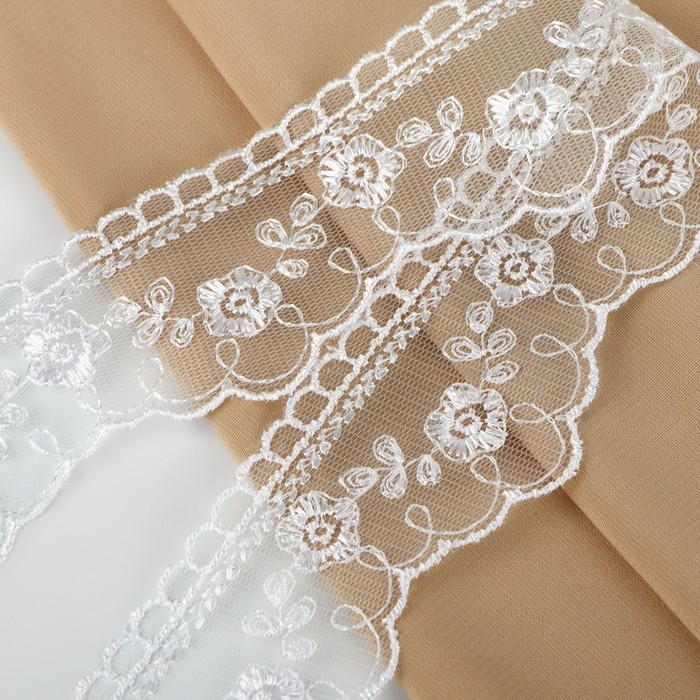 Кружево на сетке, 105 мм × 11 ± 1 м, цвет белый