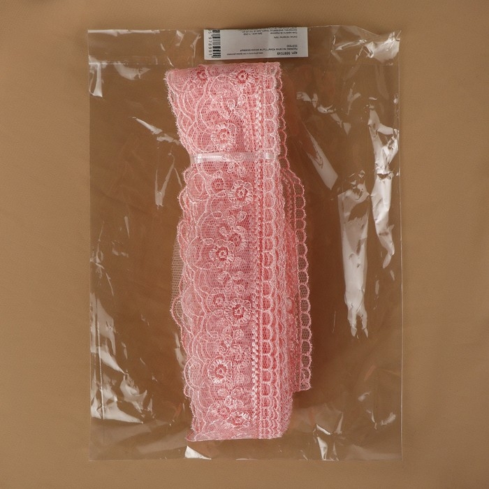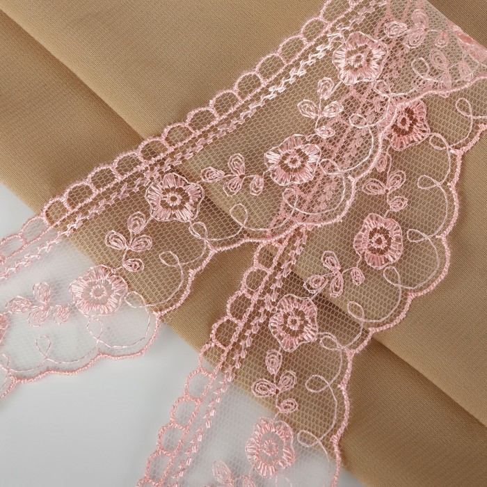 Кружево на сетке, 40 мм × 11 ± 1 м, цвет нежно-розовый