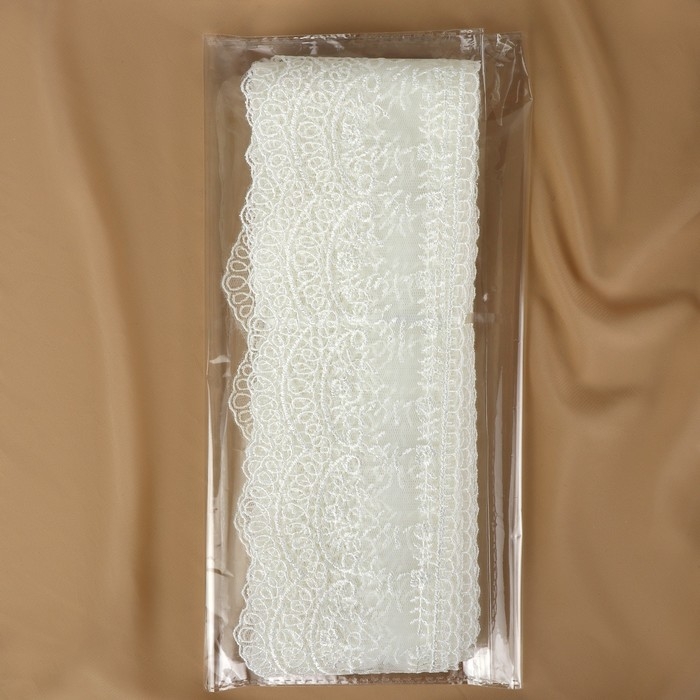 Кружево на сетке, 280 мм × 11 ± 1 м, цвет айвори