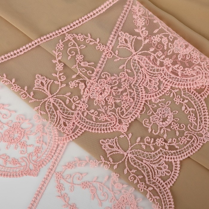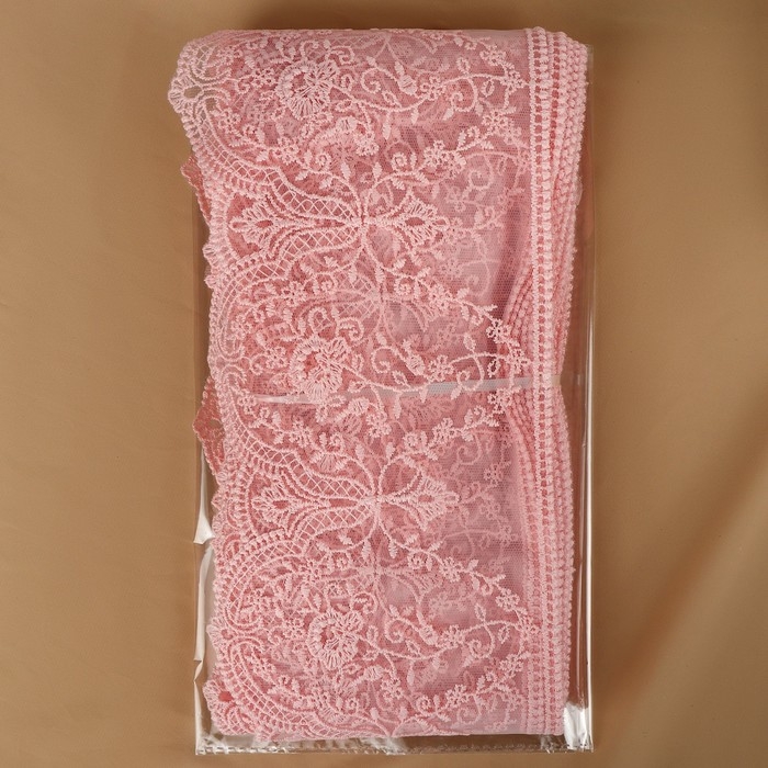 Кружево на сетке, 145 мм × 11 ± 1 м, цвет нежно-розовый