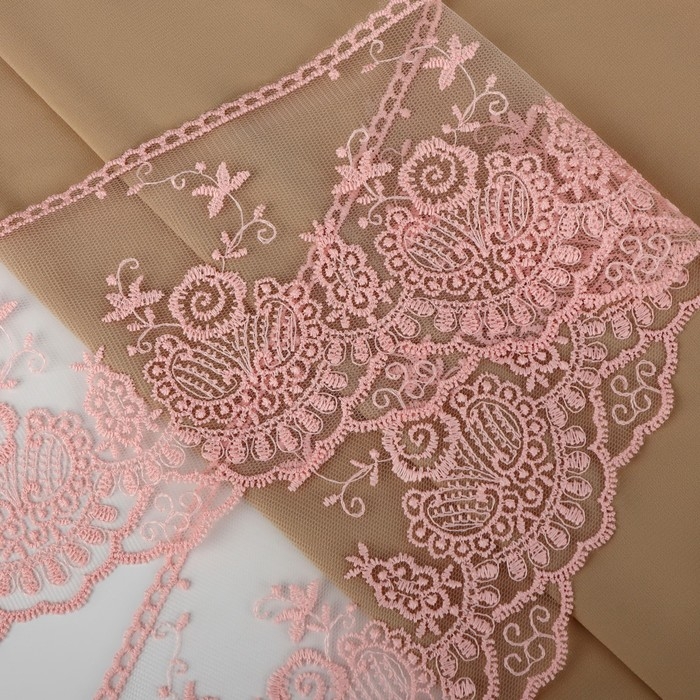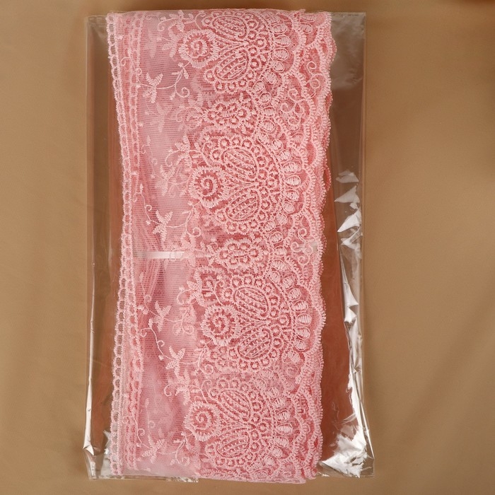 Кружево на сетке, 125 мм × 11 ± 1 м, цвет нежно-розовый