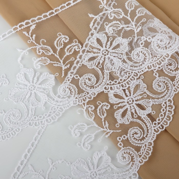 Кружево на сетке, 280 мм × 11 ± 1 м, цвет айвори
