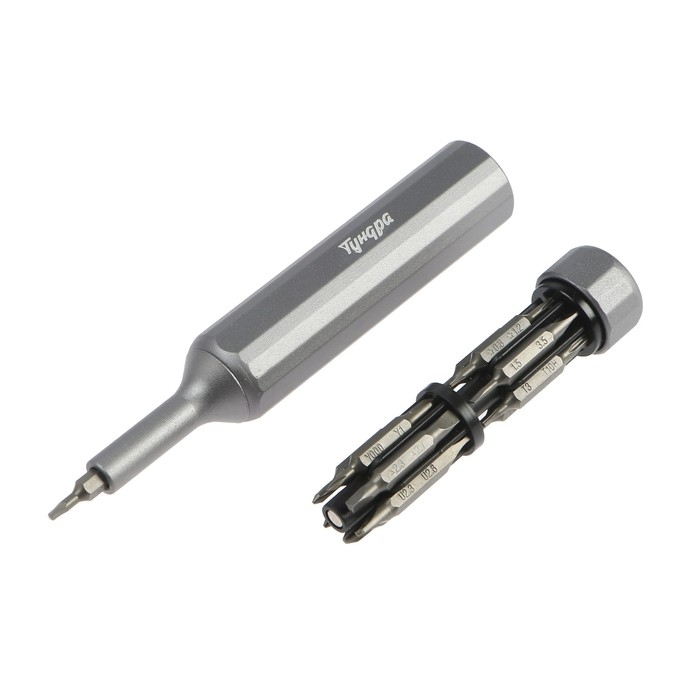Отвертка с битами для точных работ ТУНДРА, двухсторонние биты 13 шт. 26 в 1